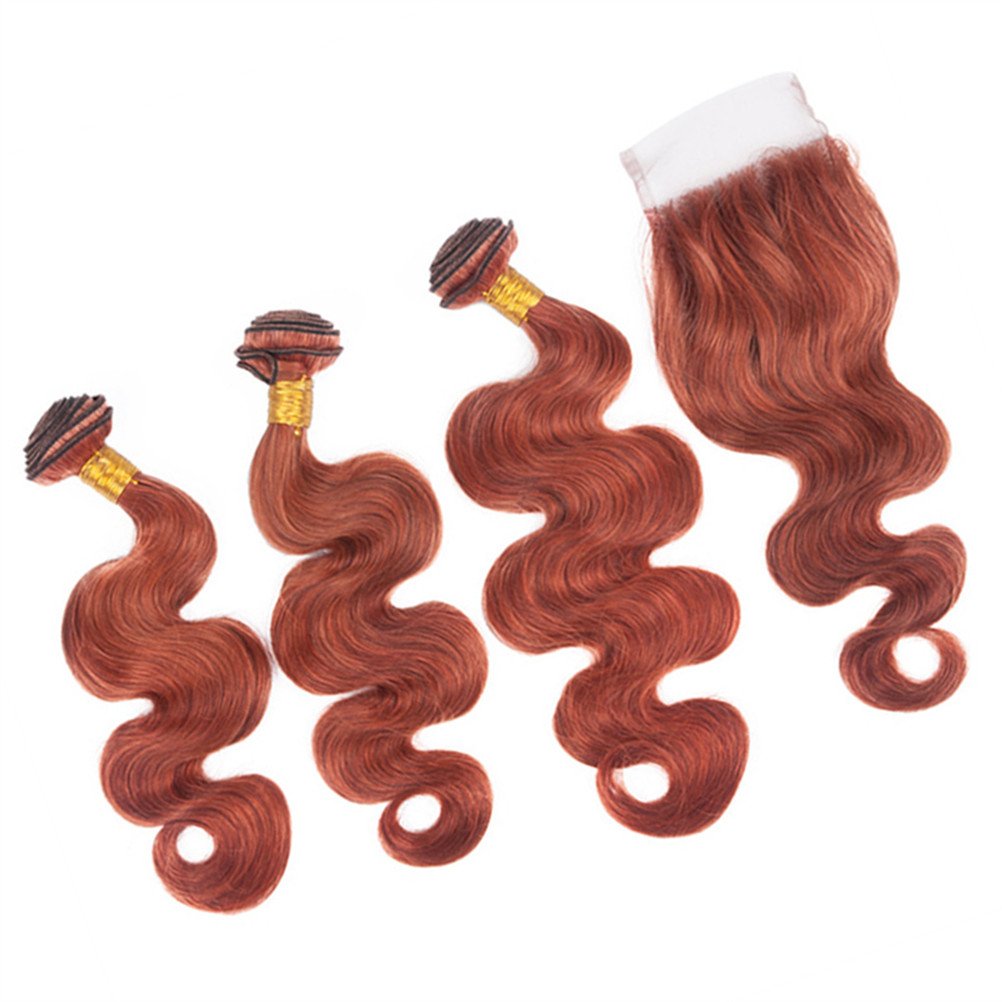 Zara Hair Dark Auburn Hair Bundles With Closure Copper Red Hair Extensions Human Hair Bundles With Lace Closure Color 33 Brazilian Body Wave Hair Weaves With 4x4 Closure 14 With 16 18 20